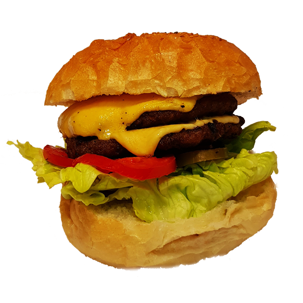 2 عدد برگر گوشت 150 گرمی، 2 اسلایس پنیر گودا، کاهو، گوجه، خیارشور، سس مخصوص، نان گرد